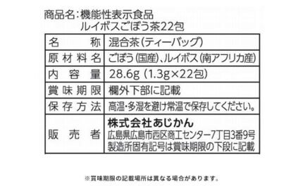 あじかん「機能性表示食品 ルイボスごぼう茶」22包