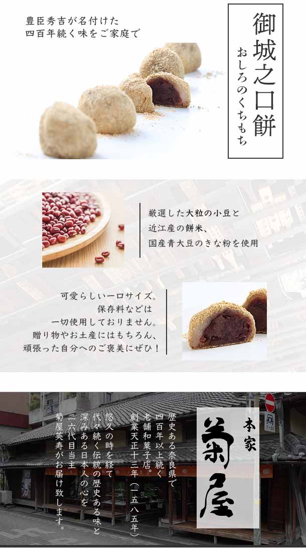 本家菊屋「御城之口餅(おしろのくちもち)粒餡きな粉餅」