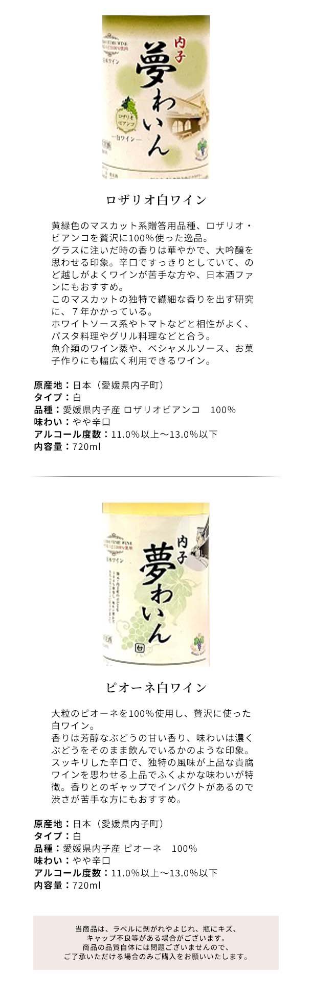 愛媛県内子町産「白ワイン2種セット」720ml
