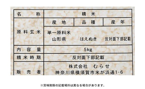 令和5年産「山形県産 はえぬき 無洗米」5kg