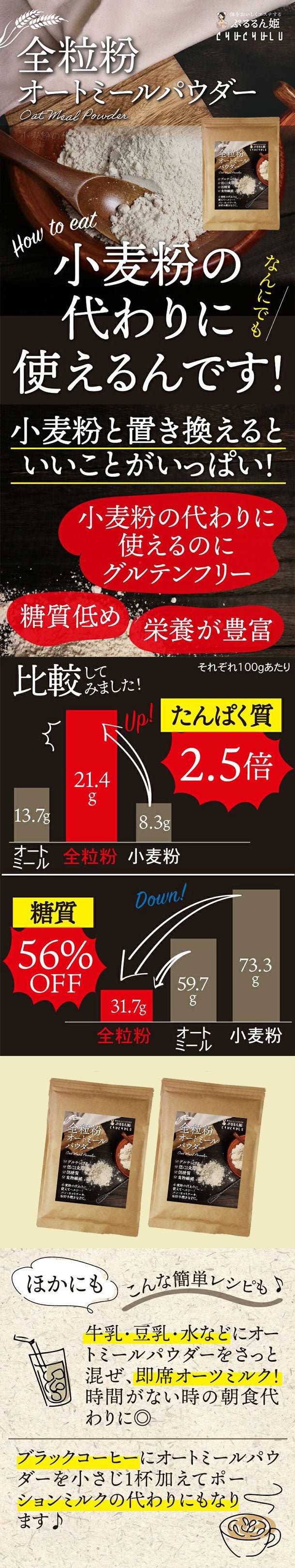 チュチュル「全粒粉オートミールパウダー」500g