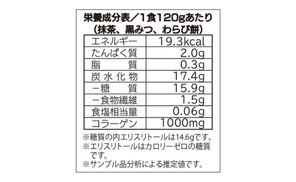 チュチュル「ローカーボ 希少糖わらび餅風 コラーゲン抹茶粉付 黒みつ味」120g