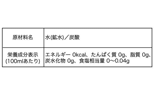 ガスボリューム5.0(充填時)の設定により、クリアな爽快感と強い刺激がお楽しみ頂ける炭酸水に仕上がっております。ストレートでも、割材としてもお飲み頂けます。