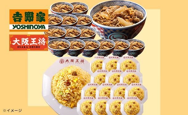 吉野家×大阪王将「牛丼の具&直火炒めチャーハン王道セット」合計30食
