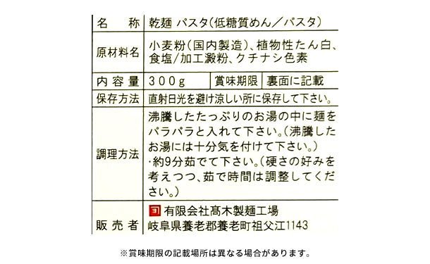 「低糖質麺 パスタ」300g