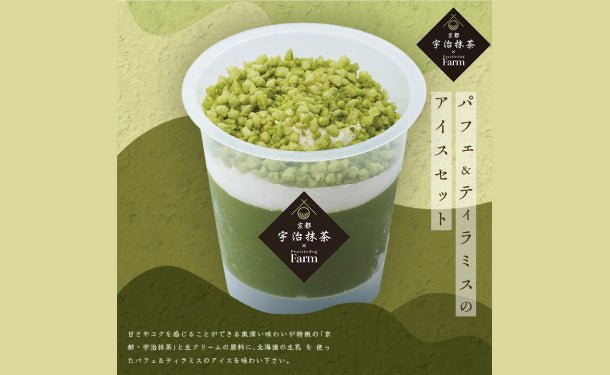 宇治茶は静岡茶、狭山茶とともに日本三大茶と呼ばれています。甘さやコクを感じることができる京都・宇治抹茶と生クリームの原料に北海道の生乳を使ったパフェとティラミスのアイスクリームです。