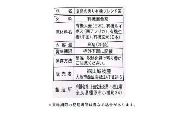 「自然の実り 有機ブレンド茶 ティーバッグ20袋入」