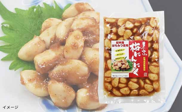 にんにくと紀州南高梅を漬け込んだ梅にんにくです。