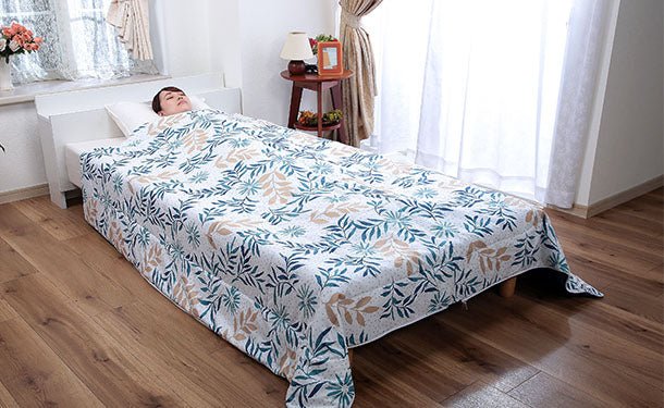 「ボーダー柄 しじら織りキルトケット ブルー」
