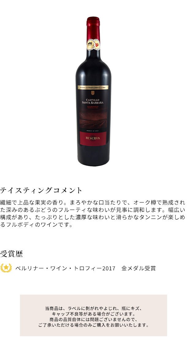 スペイン産 赤「カスティーリョ・サンタ・バルバラ レセルバ」750ml