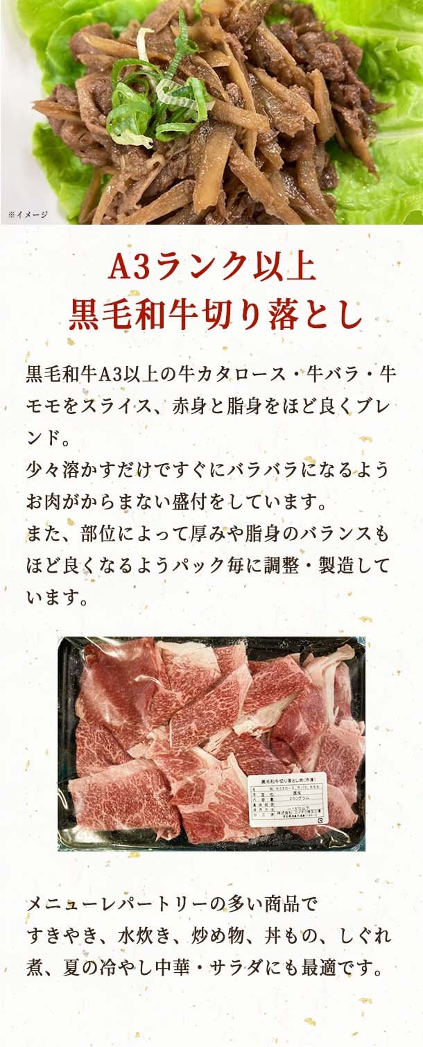 「A3ランク以上 黒毛和牛切り落とし」 250g
