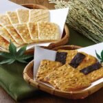 焼き方が難しいうす焼き煎餅は、薄くて香ばしくパリッとした軽さが特長で、うすば焼ならではの食感が人気です。海老、あおさ海苔、黒胡麻など4種類の味をお楽しみください
