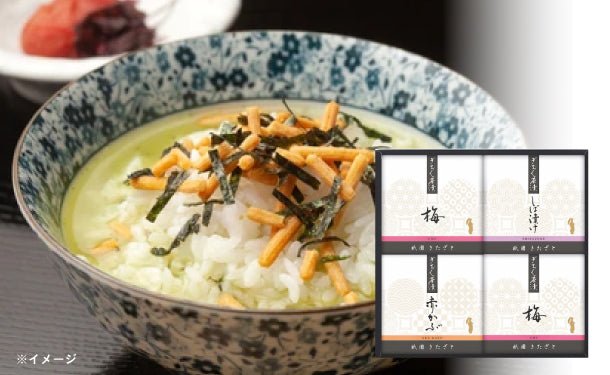割烹料理屋の味をご家庭で手軽に味わっていただけるお茶漬けセットです。梅・赤かぶ、しば漬けの3種のお茶漬けをお届けします。