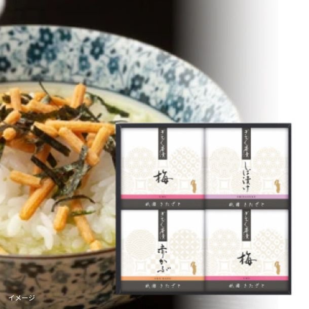 割烹料理屋の味をご家庭で手軽に味わっていただけるお茶漬けセットです。梅・赤かぶ、しば漬けの3種のお茶漬けをお届けします。