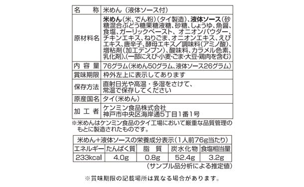 ケンミン食品「米粉専家 タイ風焼そばパッタイ」