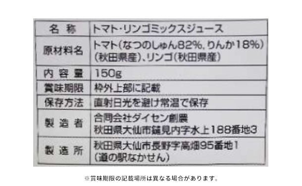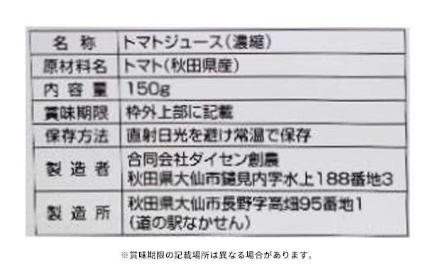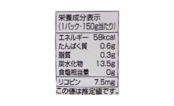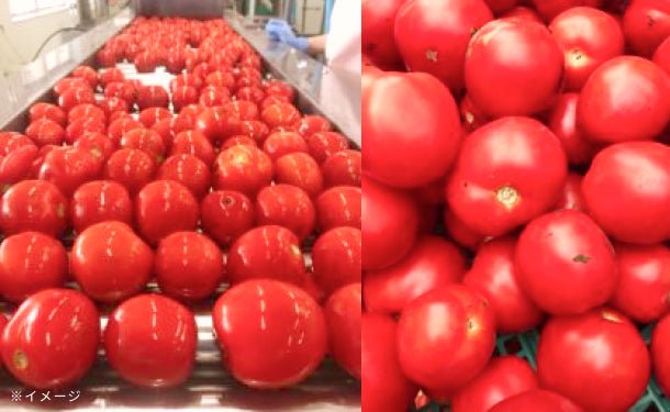 秋田県の自社・契約農場で露地栽培された加工用トマト『なつのしゅん』を100%使用しております。『なつのしゅん』はリコピン成分が一般の生食用の2倍以上含まれる品種です。本製品1個(150g)に『なつのしゅん』が約2.5個分使われています。