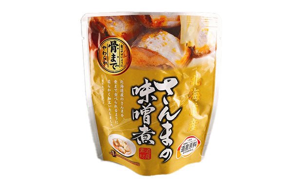 北海道根室産のサンマをひと口サイズにカットして独自の調味液で骨まで柔らかく煮込んでいます。常温で保管が出来るレトルト商品です。
