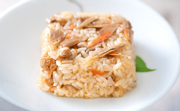 鶏肉と、ゴボウやにんじんを加えた具材たっぷりおこわです。手間ひまかけて調理した国産素材のうまさをご賞味ください。