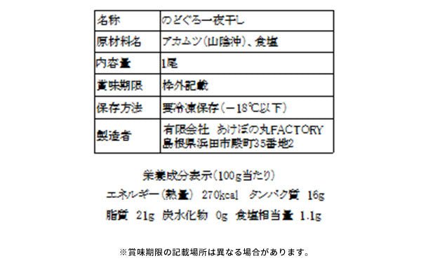 「あけぼの丸」が山陰沖で漁獲した新鮮な「のどぐろ」の中でもA級品を使用した贅沢な一夜干し。