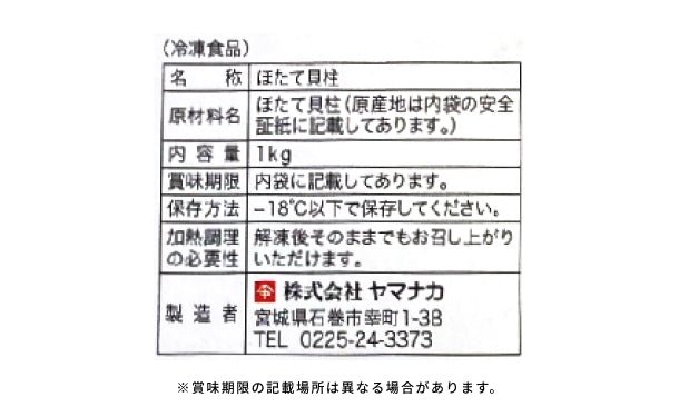 「冷凍ホタテ貝柱」1000g