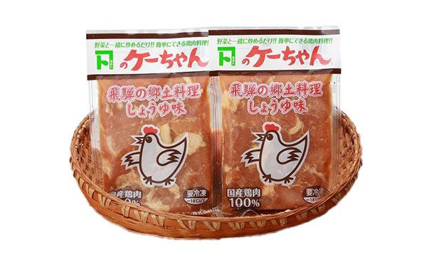 『ケーちゃん』とは、みそ・しょうゆ等で味付けした鶏肉を野菜と一緒に香ばしく焼いて食べる家庭料理で岐阜県飛騨地方の郷土料理です。