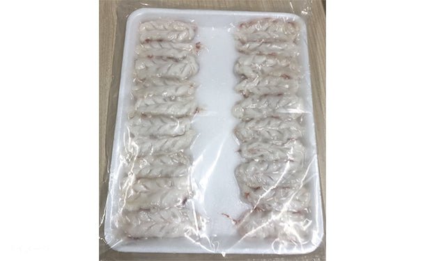 アルゼンチン産の赤海老をインドネシアにて殻取して開き加工しておりますが、その時に発生してしまう「尾っぽまで外れてしまった海老」をMIX規格として商品化しています。これは正規品と見た目の違いだけの商品で、生食としてちらしなどの食材として重宝されています。通常は加工の際に、はじかれてしまった商品のため不安定な入荷で貴重な商品です。