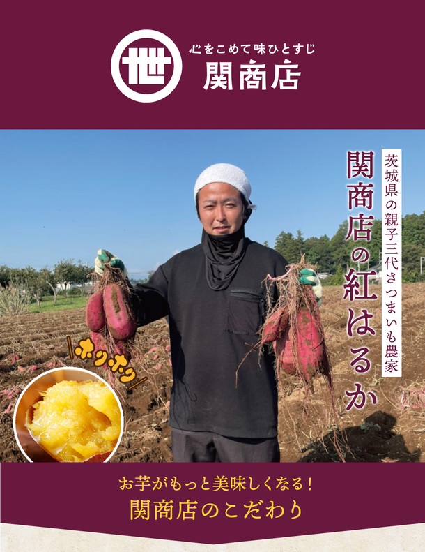 蜜芋と呼ばれるほど上品な甘さを持ち、市場に出回る既存品種のさつまいもよりも形・味ではるかに優れていることから「紅はるか」と名付けられました。また糖分がたっぷり入って甘みが強く柔らかい食感なので、焼き芋にとても適している品種となります。ひとつひとつ心を込めて丁寧に仕上げました。