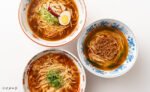 3、添付のスープは1袋に対して下記湯量で希釈し、ゆであがった麺を入れ、お好みの具材をのせてお召し上がりください。