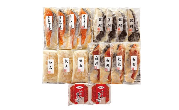 数種類の魚介を、北海道・小樽にある造り酒屋の吟醸酒の酒粕でじっくりと漬け込みんだ小樽吟醸酒粕造りと甘口でまろやかな仕上がりのいくら醬油漬けです。