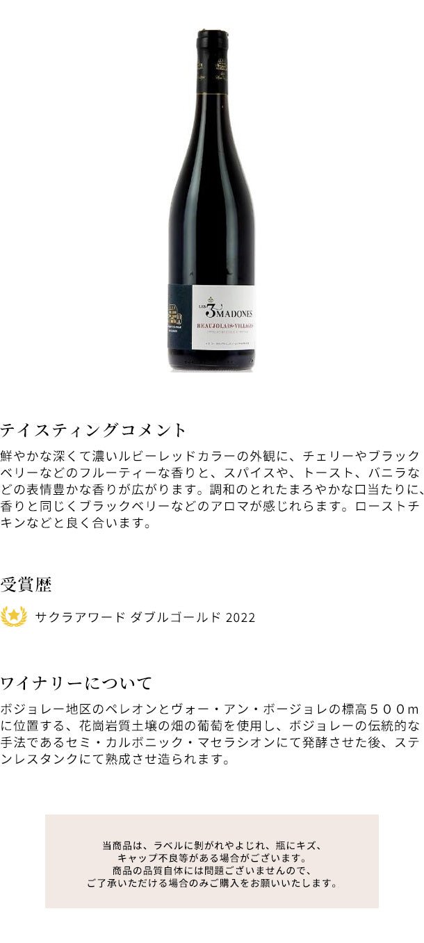 フランス産 赤「レ・スリー・マドンヌ 2021」750ml