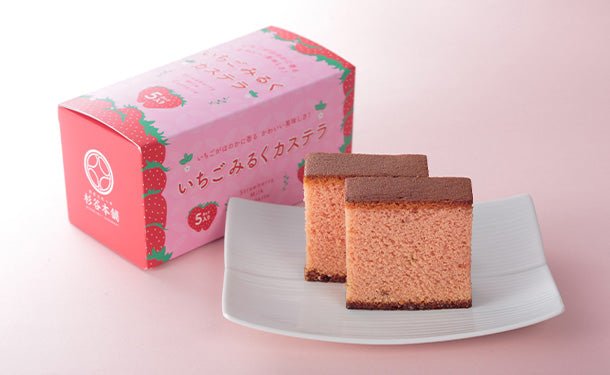 開けた瞬間にふわっと広がるいちごの香り。 ソフトクリームにも使われる濃厚なミルクの深い味わい。 果実を感じる甘酸っぱさとミルクのまろやかさが調和する、フルーティで優しい甘さのカステラです。