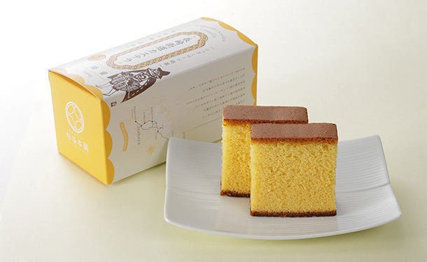 長崎街道カステラの原点。 蜂蜜のもつ優しい甘さを生かし、地元で採れた新鮮なたまごを使い、しっとりと焼き上げた生地。 底に蒔かれたザラメとの相性もよく「長崎街道カステラ」不動の1番人気商品。