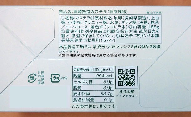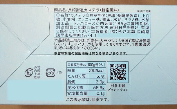 杉谷本舗「長崎街道カステラ 5種類」各185g