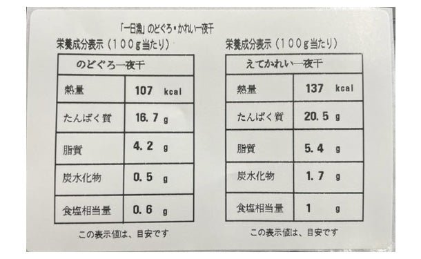 「一日漁 のどぐろ・かれい一夜干」