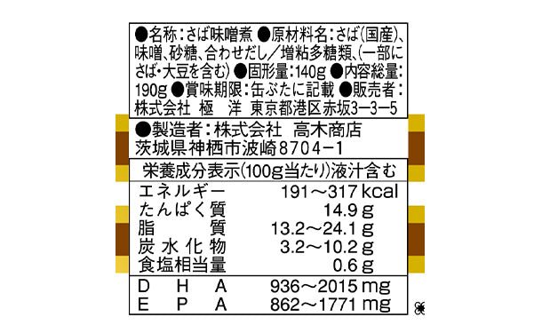 ※同社「さばみそ煮(190g)」と比べ、ナトリウム量(食塩相当量)を30%低減しています。