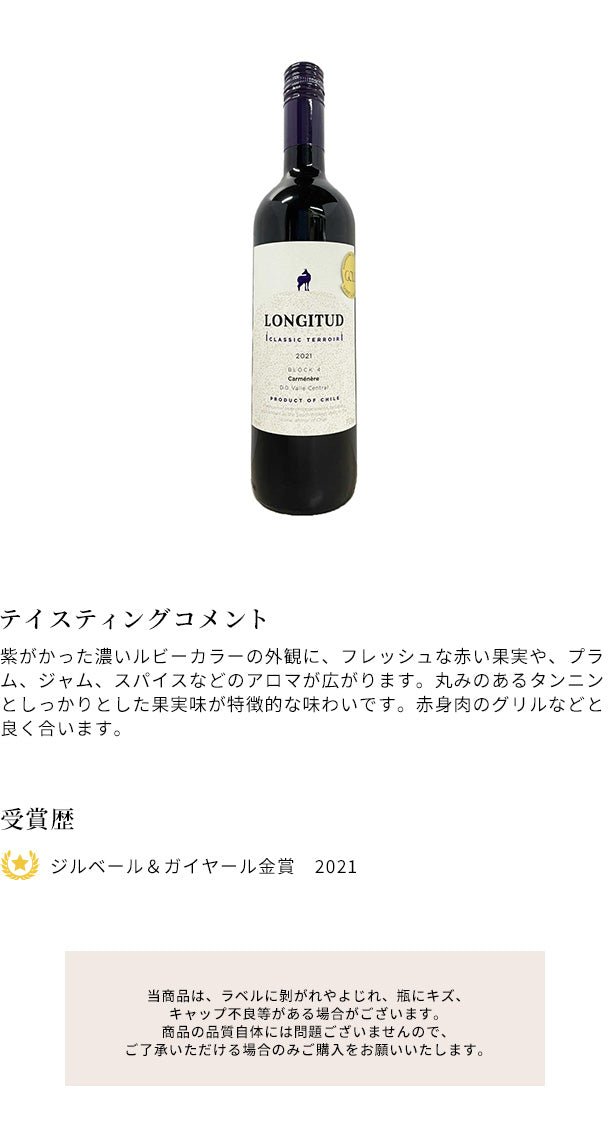 チリ産 赤「ロンギチュード カルメネール 2021」750ml