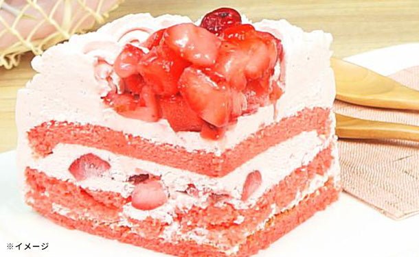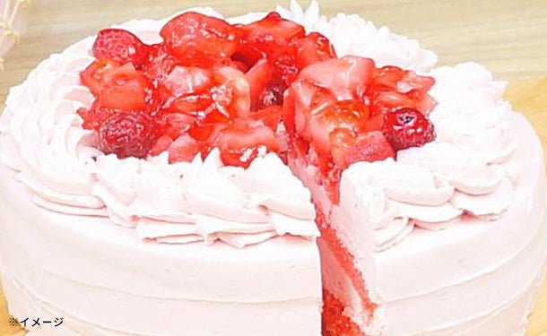 その色の正体は、もちろん、いちごです。いちごの果肉、クリーム、そして生地にもいちごを使用した、まさに、いちごづくしのデコレーションケーキです。
