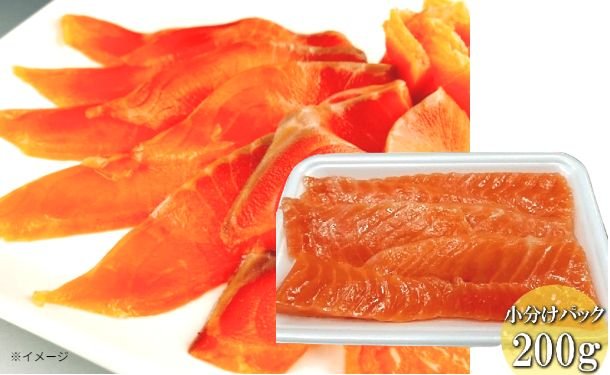 『スモークサーモン仕立て』を製造する際に約5%程しか出来上がらない脂のり抜群の希少部位を200gの真空パック包装でお届けいたします!