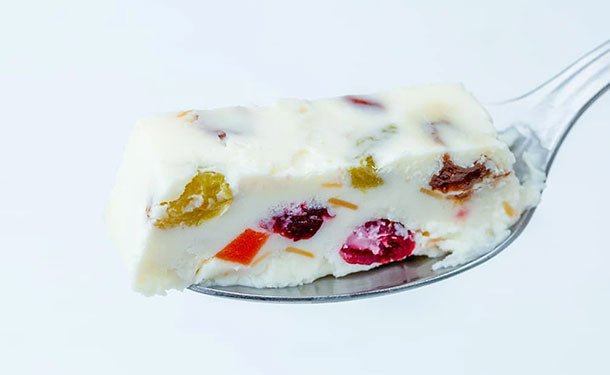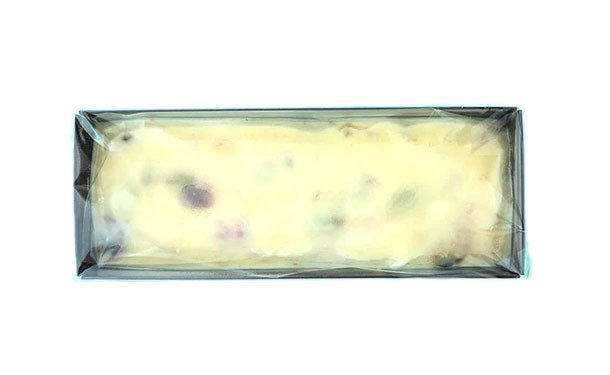 甘酸っぱいドライフルーツと、香ばしいナッツを混ぜ込んだアイスケーキです。