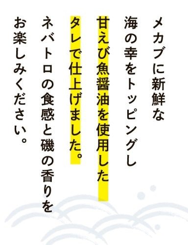 温かいご飯や冷たいお蕎麦やうどんにぶっかけてネバトロの食感と磯の香りをお楽しみください!