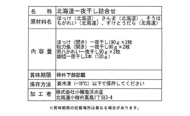 「一夜干し 詰合せ」
