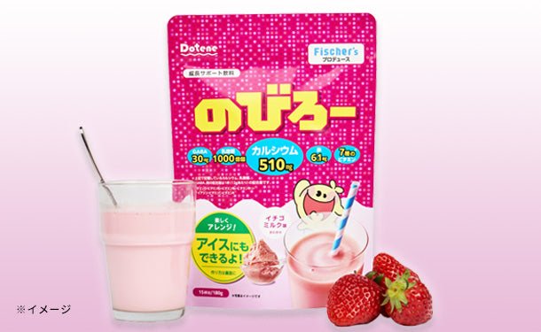 「のびろー」は牛乳150mlに12g(大さじ約すり切り2杯)を混ぜて飲む、粉末状の成長サポート飲料です。