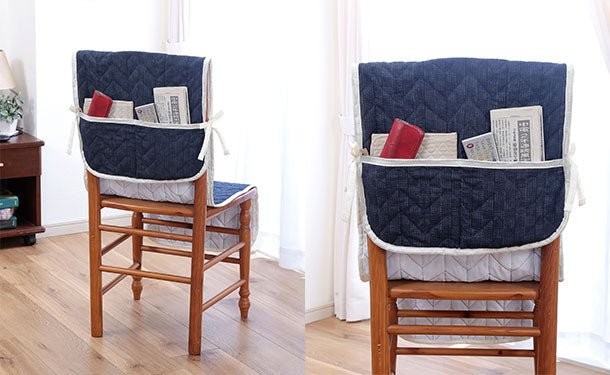 背中にはリモコンや新聞紙をサッとしまえるポケット付き。