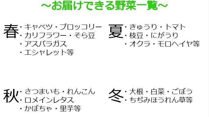 採れたてで使いやすい定番野菜を中心にお送りします