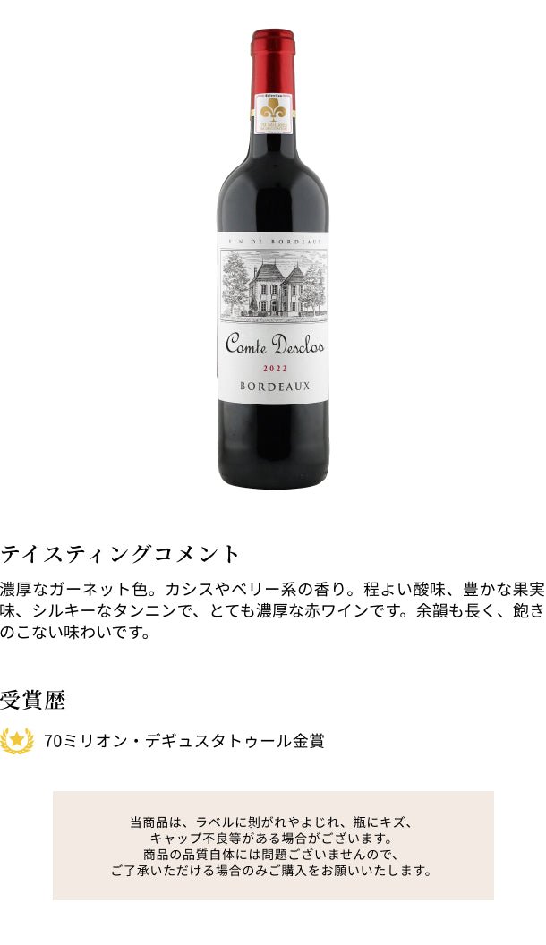 フランス産 赤「コント・デクロ ボルドー・ルージュ」750ml