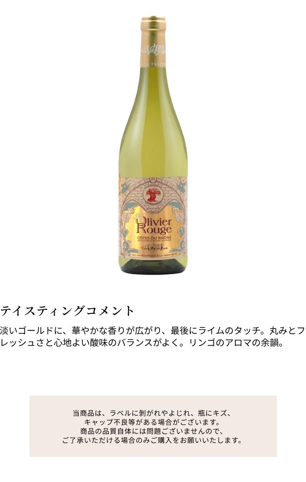 フランス産 白「オリヴィエ・ルージュ コート・デュ・ローヌ・ブラン」750ml