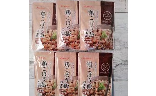 国内産の柔らかな鶏肉と、だしをたっぷり吸収したごぼうを使った鶏ごぼう飯の素。