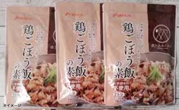 国内産の柔らかな鶏肉と、だしをたっぷり吸収したごぼうを使った鶏ごぼう飯の素。