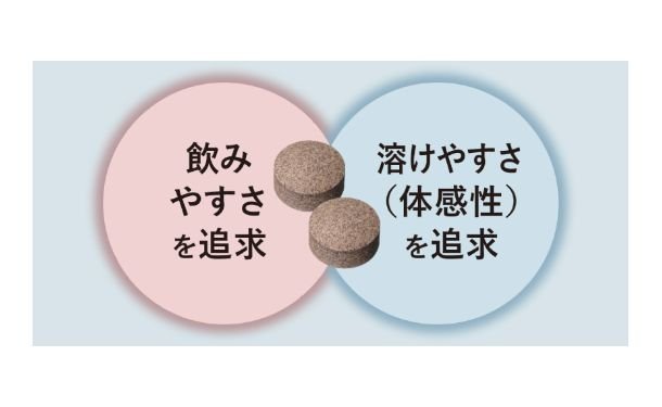 効果を実感していただきたいから、 継続しやすくするため飲みやすさを追求しました。 特殊コーティング「DDScoat*1」を採用し苦味や辛味を感じにくく、より早く溶ける粒タイプにすることに成功。 活動をはじめる前の1日の始まりに 2粒飲むことをおススメします。