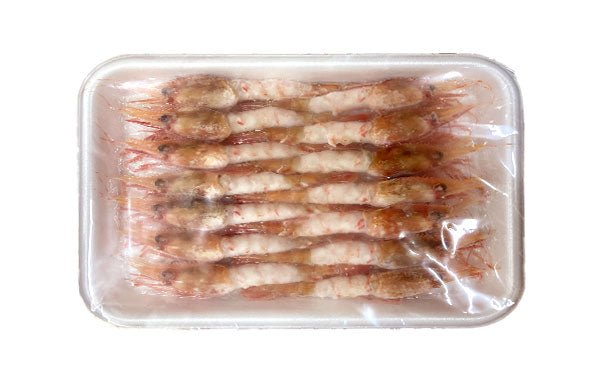 頭付きのまま、殻をむいているので、手間なくそのままお刺身や海鮮丼、カルパッチョにお使いいただけます。